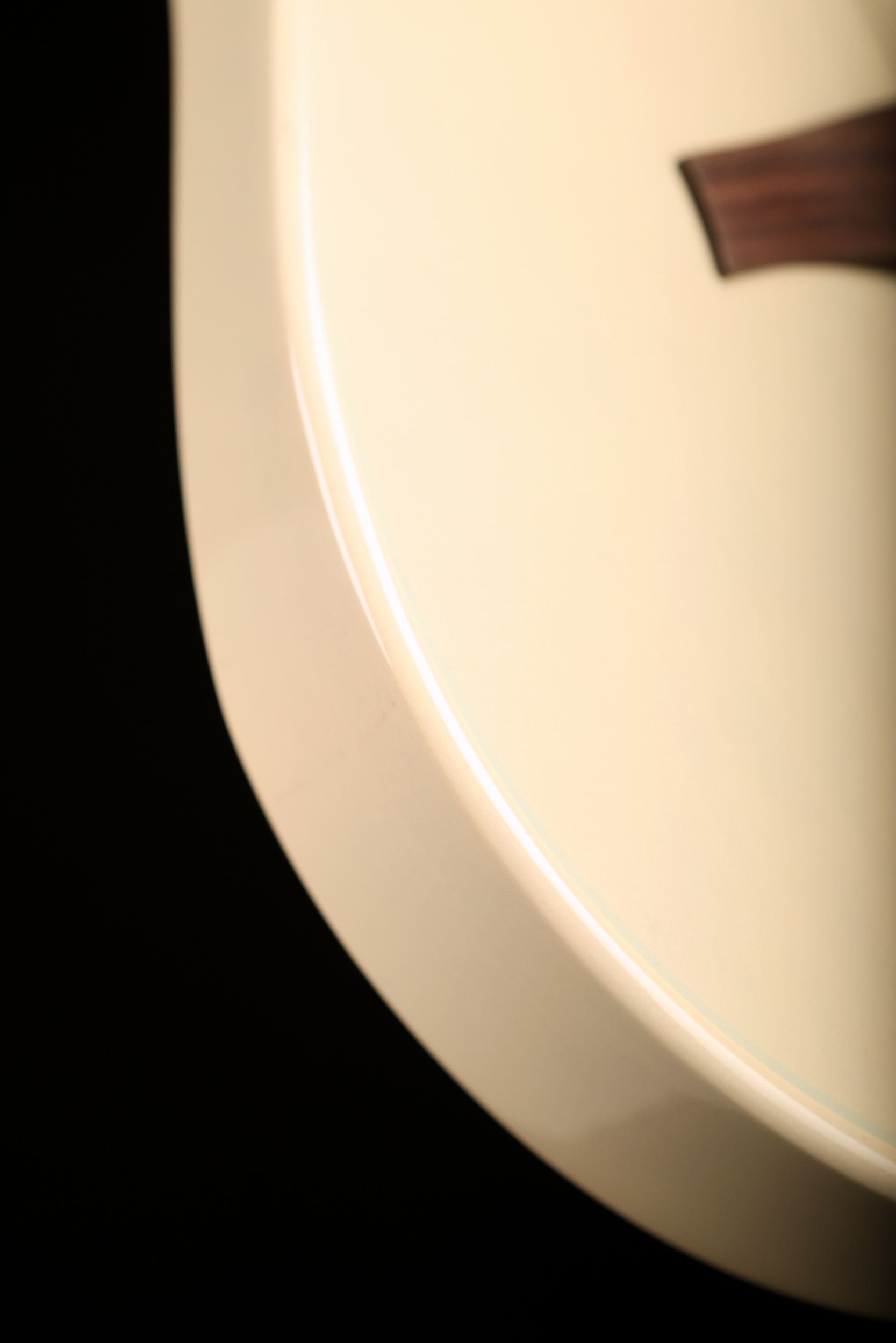 Solid cedar top and hollow silver leaf maple body for resonance and feedback-free tone
