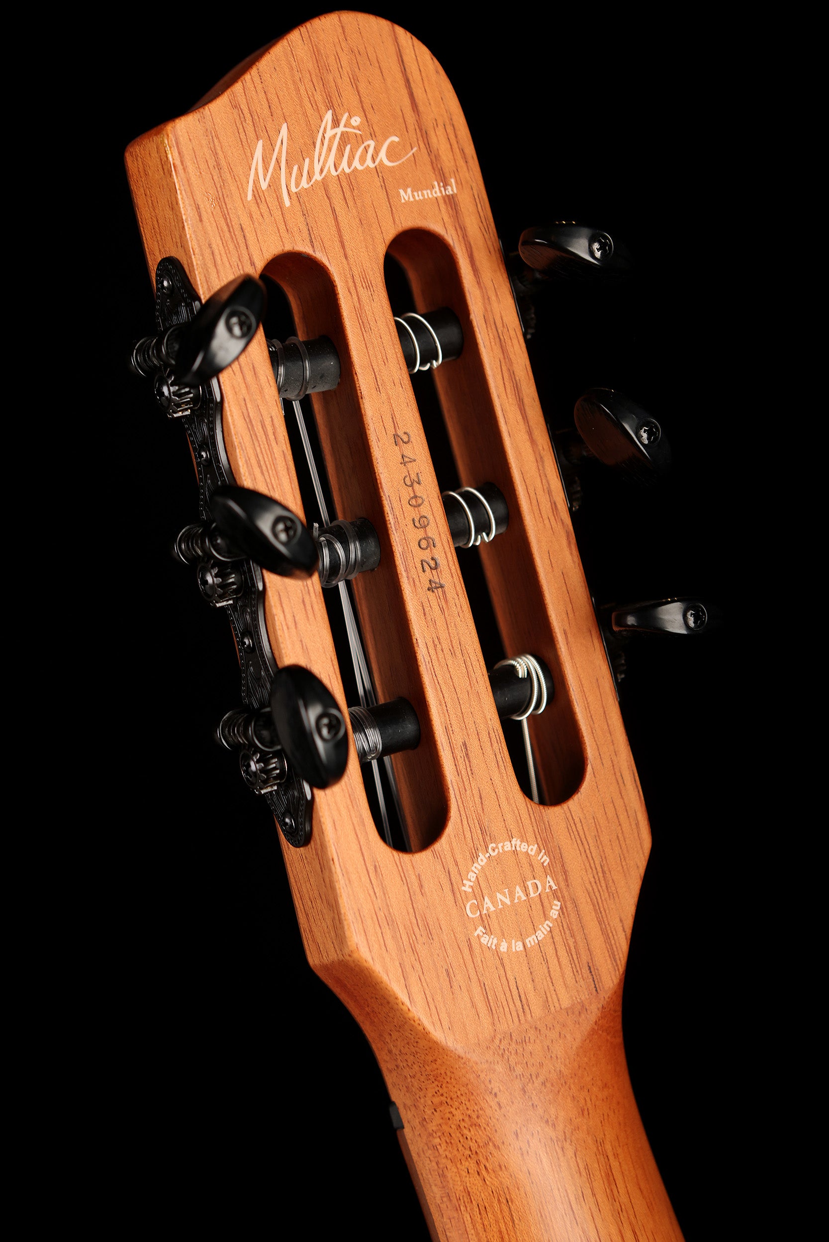 Equipped with the Godin Custom Dual Source System, the Multiac Mundial offers the ideal blend of precision and versatility. Players can mix the undersaddle pickup and internal body sensors to achieve everything from crisp, percussive attack to lush, full-bodied warmth—all without the feedback issues common in traditional acoustic guitars. It’s the ultimate nylon-string performer for musicians who demand refined tone and effortless playability.