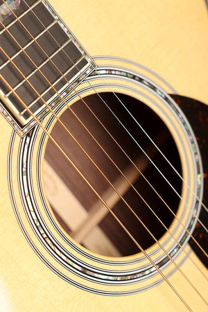 The Martin OM-45 represents the absolute pinnacle of Martin’s craftsmanship, blending timeless 45-style elegance with modern refinements for today’s players. Built with a solid Sitka spruce top and solid East Indian rosewood back and sides, this Orchestra Model delivers a beautifully balanced and articulate voice, with rich overtones, exceptional sustain, and outstanding clarity across the entire frequency range. Enhanced by Golden Era scalloped bracing, the OM-45 offers a more open, vintage-inspired response that feels alive under the fingers.
