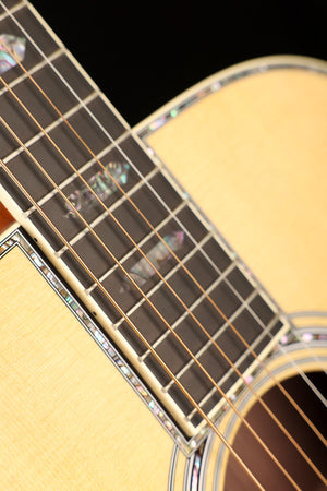 Every detail of the OM-45 reflects Martin’s highest level of artistry. From the abalone pearl inlay across the top, back, sides, and fingerboard to the gold open-gear tuners and antique white binding, this is an instrument that is as visually breathtaking as it is sonically inspiring. The GE Modified Low Oval neck profile with a high-performance taper ensures effortless playability, while refined touches like a thinner ebony fingerboard with beveled edges elevate comfort even further.