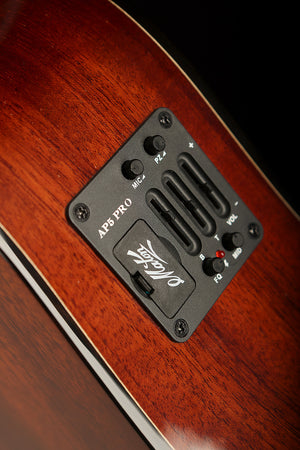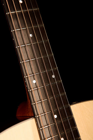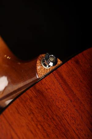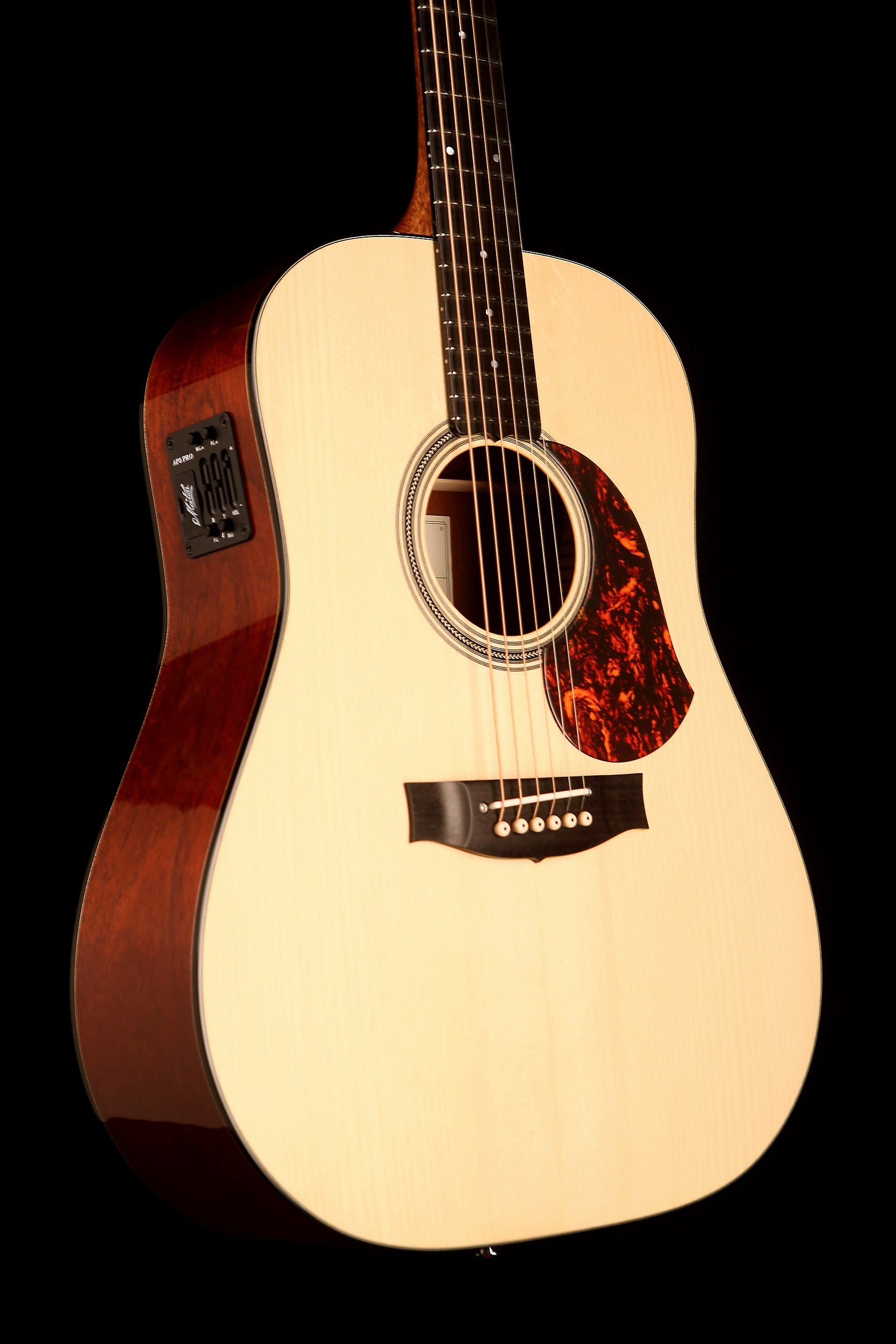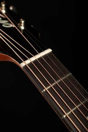 With a traditional dreadnought body and scalloped Maton X bracing, the guitar balances thunderous low-end with articulate highs. The mahogany neck and ebony fingerboard provide a silky playing feel, while the AP5 PRO pickup system ensures the guitar’s natural voice translates flawlessly when amplified. Elegantly finished with an ebony-bound body, pearl dot inlays, and a tortoiseshell pickguard, this instrument is both visually stunning and sonically inspiring.