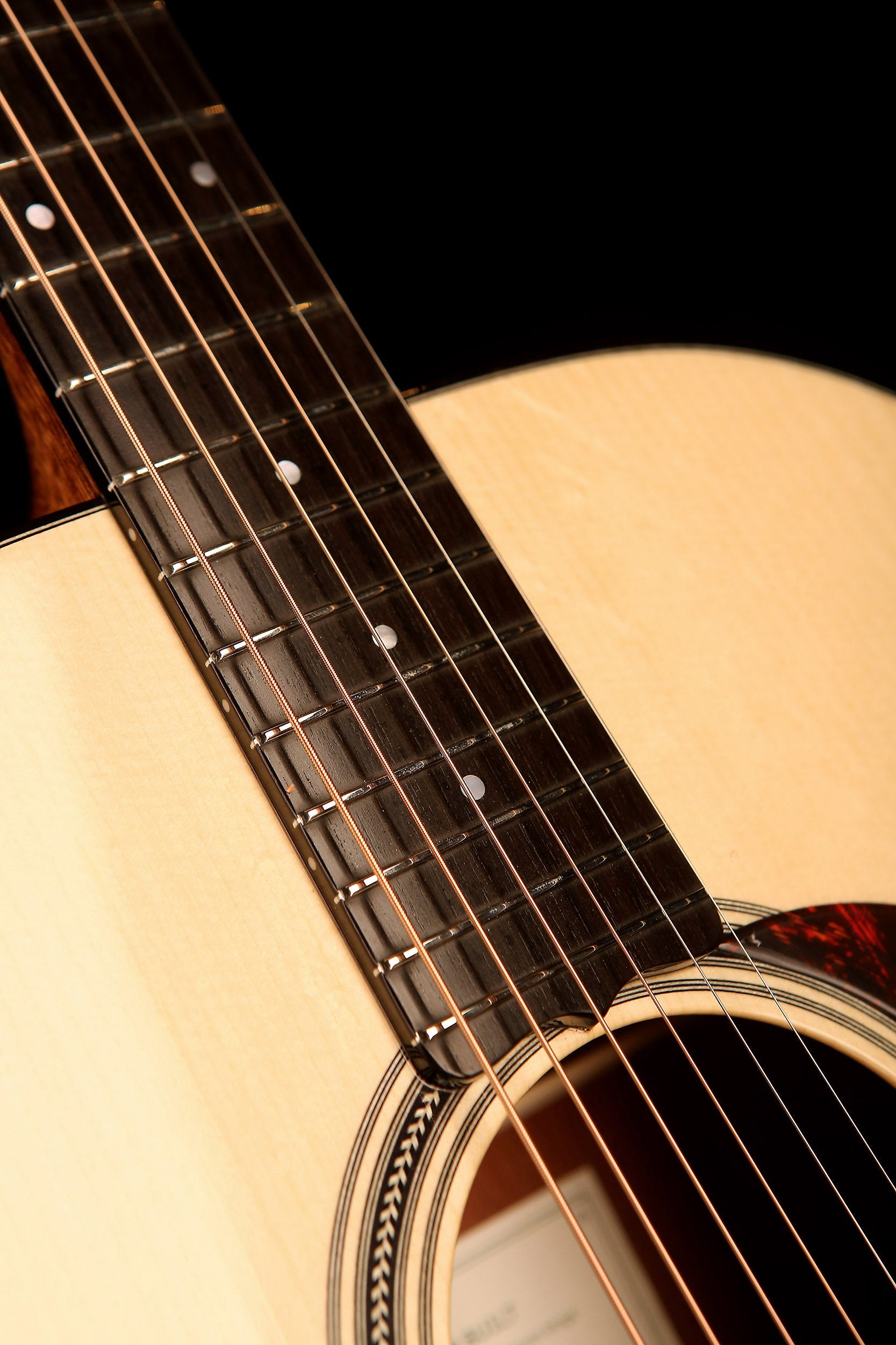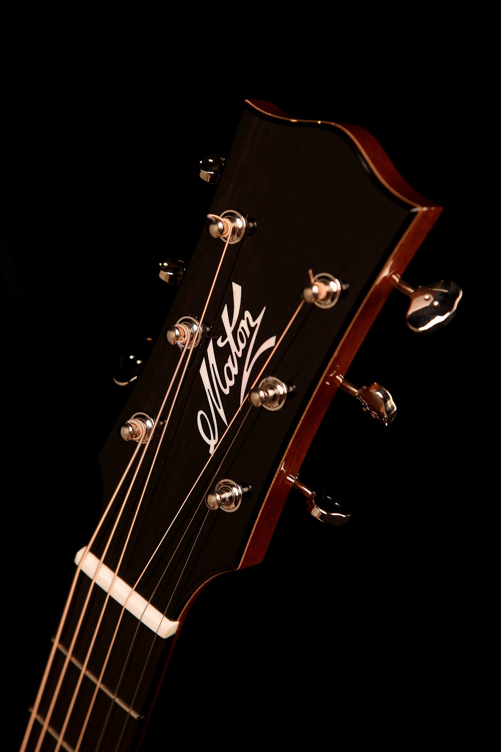 Ebony fingerboard, bone nut and saddle, and chrome open-back tuners