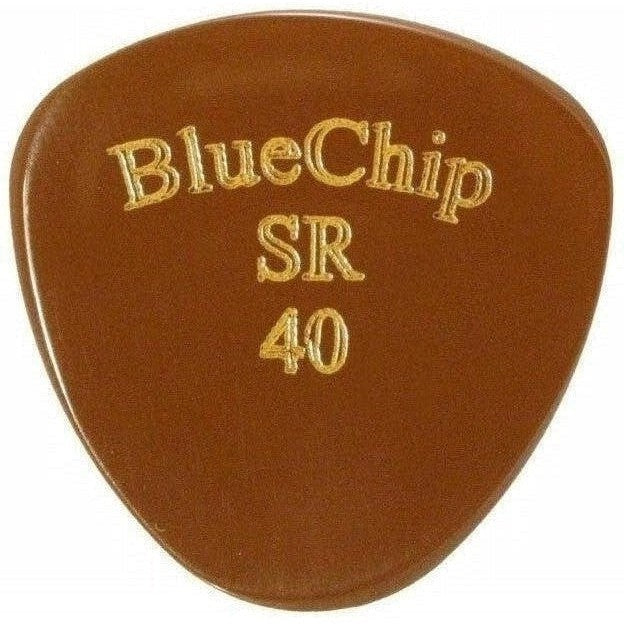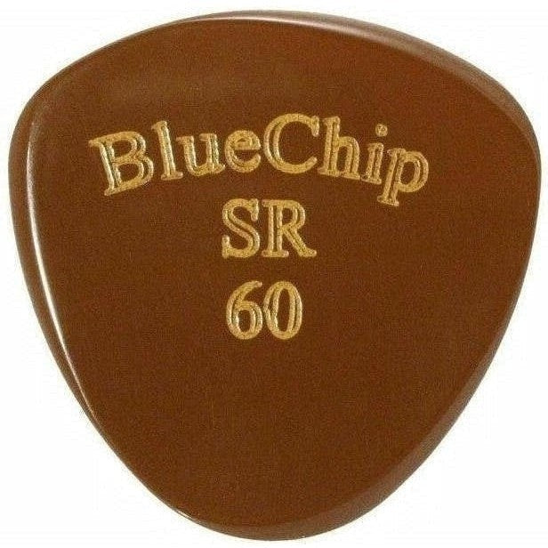 The SR is an extremely rounded triangle shaped pick in various thicknesses. The bottom corner radius is greater than the top two corners. Blue Chip Picks are all precision machined and hand beveled for the highest quality.