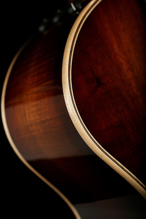 The K24ce's stunning appearance is just as impressive as its sound. Highlighted by the shaded edgeburst finish that surrounds the entire guitar, the Koa hardwood's shimmering figure is accentuated with maple binding and top trim that adds a creamy counterpoint against the wood's natural finish. Additionally, the guitar features organically styled appointments, including the new Spring Vine inlay in maple, making it an instrument that is as visually stunning as it is sonically impressive.