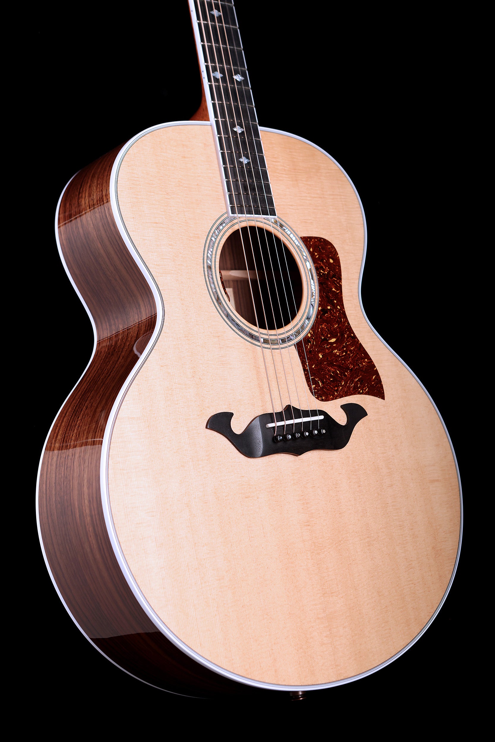 This 2024-built guitar is in wonderful condition, and as one of the initial 250 guitars built it features a hand signed label by Bob Taylor himself! There's only minimal playwear, and it has a great medium action that responds beautifully to delicate fingerpicking or harder strummers. It's an absolute cannon, with Taylor's signature playability and a rich, complex and deep tone. A very rare and beautifully-appointed Taylor jumbo guitar.