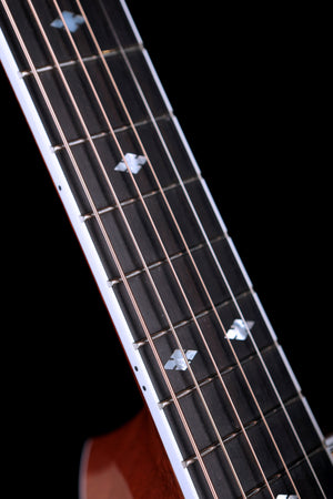 The Taylor 815e Legacy celebrates 50 years of Taylor innovation by reviving their iconic Jumbo body shape with a bold voice and vintage-inspired feel. Its solid Sitka spruce top and Indian rosewood back and sides create a rich, harmonically complex sound that projects effortlessly, delivering thunderous low end, crystalline highs, and a slightly scooped midrange that sits perfectly in a mix. Whether you’re strumming hard, flatpicking, or playing fingerstyle, the 815e Legacy responds with remarkable dynamic range and balance.