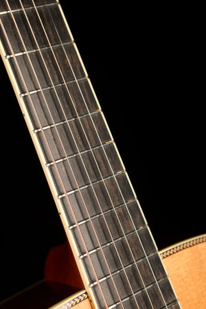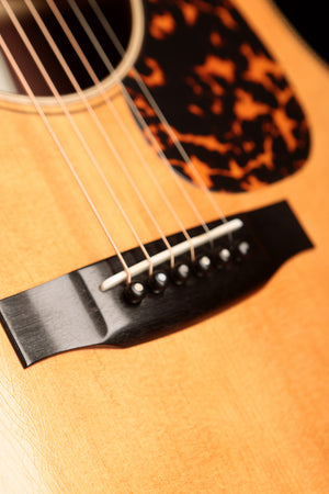 The Atkin White Rice Dreadnought Aged pays homage to one of the most iconic guitars in history — Tony Rice’s legendary D-28, previously owned by Clarence White. This Historic Series model is a meticulous recreation of that revered instrument, featuring the same enlarged soundhole, overhanging fretboard, and relic’d vintage finish. Every detail has been faithfully executed to deliver the same cannon-like power and exceptional tonal character that made the original famous among bluegrass and flatpicking players.